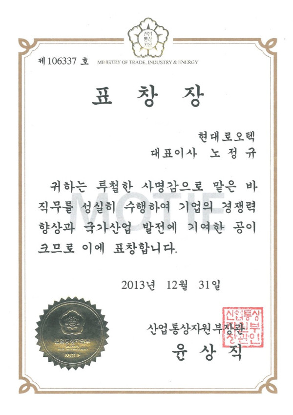 표창 산업통상자원부장관_표창장